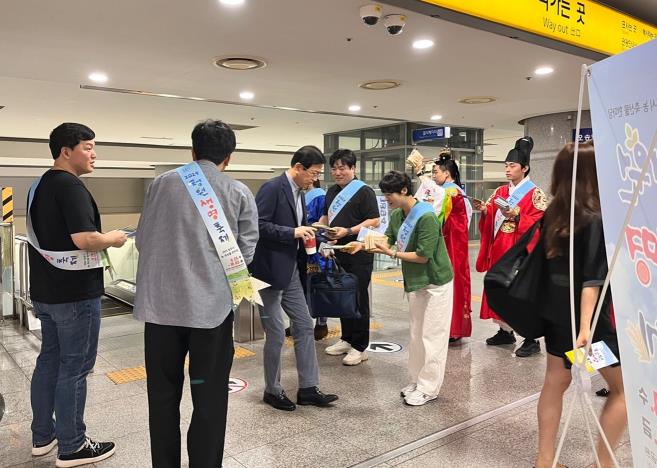 위원회는 KTX가 정차하는 대표적인 고속철도 거점인 오송역과 대전역에서 2025 청원생명축제 날짜와 주제, 주요 프로그램 및 개최 일정 등을 담은 리플릿과 기념품을 배부했다.