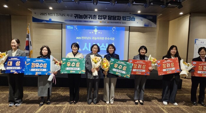 윤연화 전남도 인구청년이민국장은 “수상 시군은 지역 여건에 맞는 맞춤형 시책을 추진해 실제 귀농어귀촌 유치 성과를 높인 점이 크게 평가됐다”며 “이번 평가를 계기로 우수 정책이 확산하고 시군 현장 중심의 행정이 더욱 강화되길 기대한다”고 말했다.