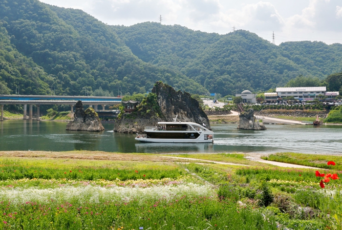 도담삼봉 건너편에 자리한 도담정원은 올해 약 4만㎡ 규모의 꽃밭에 캘리포니아양귀비와 잉글랜드양귀비, 안개초, 끈끈이대나물 등 다채로운 봄꽃을 식재해 장관을 연출하고 있다.