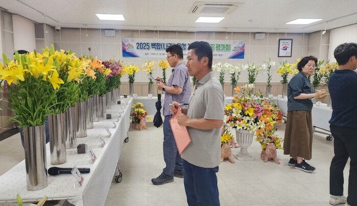 평가는 한국백합생산자중앙연합회, 충남백합연구회, 종묘업체, 관련 전문가 등 40여 명으로 구성된 심사위원단이 △화색 △초형 △생육 특성 △소비자 기호도 등을 종합적으로 살폈다.