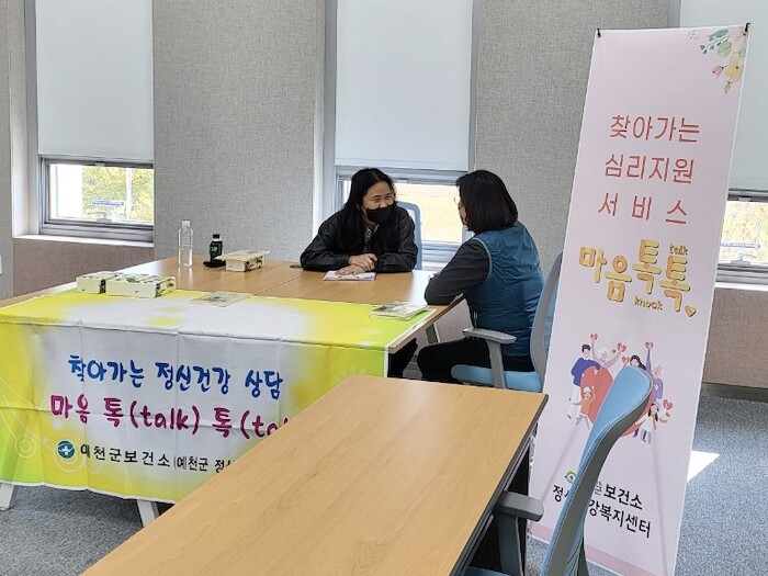 안남기 예천군보건소장은 “혼자 고민하지 말고 전문가와 함께 이야기를 나누면서 마음의 짐을 잠시 내려놓으시길 바란다”며 “힘이 들 때 언제 어디서나 쉽게 상담을 받을 수 있도록 찾아가는 심리지원 서비스를 확대 지원하는 등 최선을 다하겠다”고 말했다.