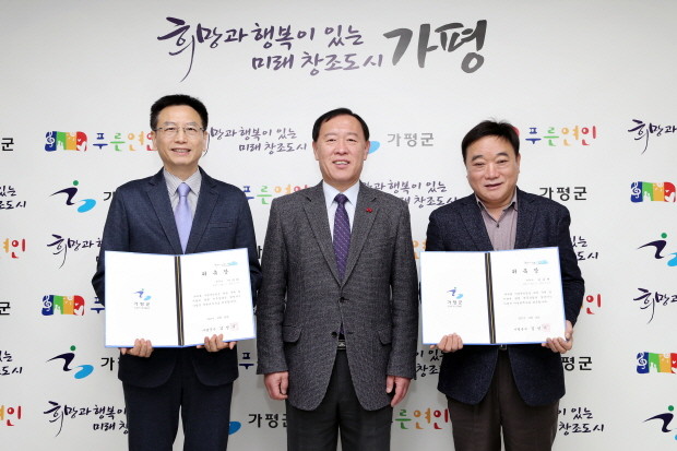 | ▲ 28일 김성기 가평군수(중잉)는 가평군 군수실에서 제2기 마을세무사 재위촉식을 하고 있다.<사진제공=가평군청> |