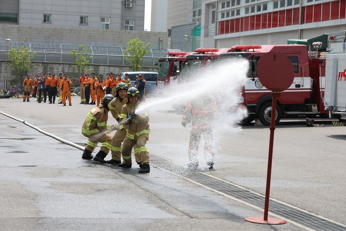 | ▲ 대전소방대원들이 소방기술 시범을 보이고 있다. (사진= 대전소방본부 제공) |