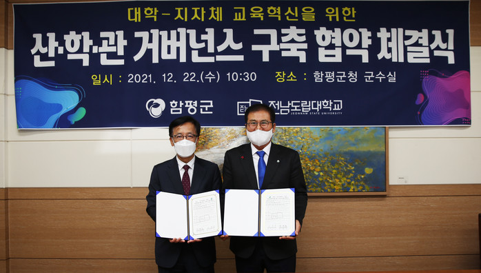 [세계로컬타임즈 이남규 기자] 함평군과 전남도립대학교가 지역의 평생직업교육 활성화를 위한 업무협약을 체결했다.