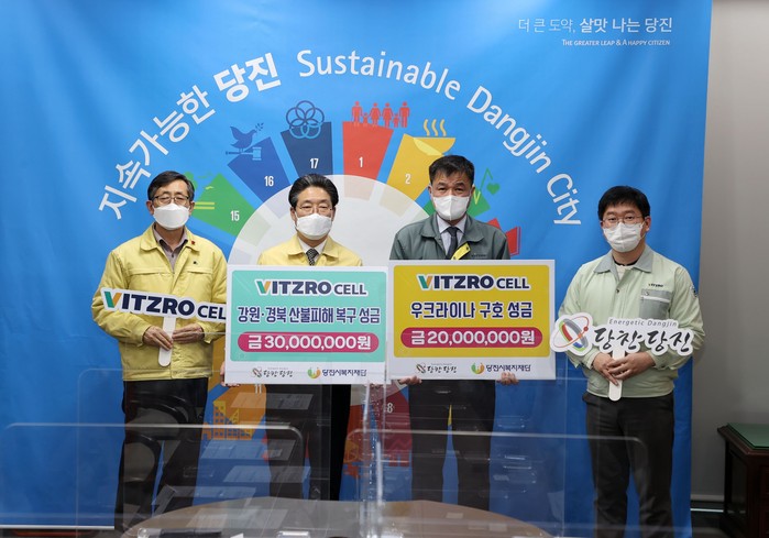 [세계로컬타임즈 홍윤표 조사위원] 당진을 대표하는 기업이자 리튬 1차 전지 생산업체 중 국내 1위, 세계 3위 기업인 ㈜비츠로셀(대표 장승국)은 지난 23일 시청을 방문해 당진시복지재단에 강원·경북 산불피해 복구 및 우크라이나 난민 구호를 위한 성금 5000만 원을 전달했다.