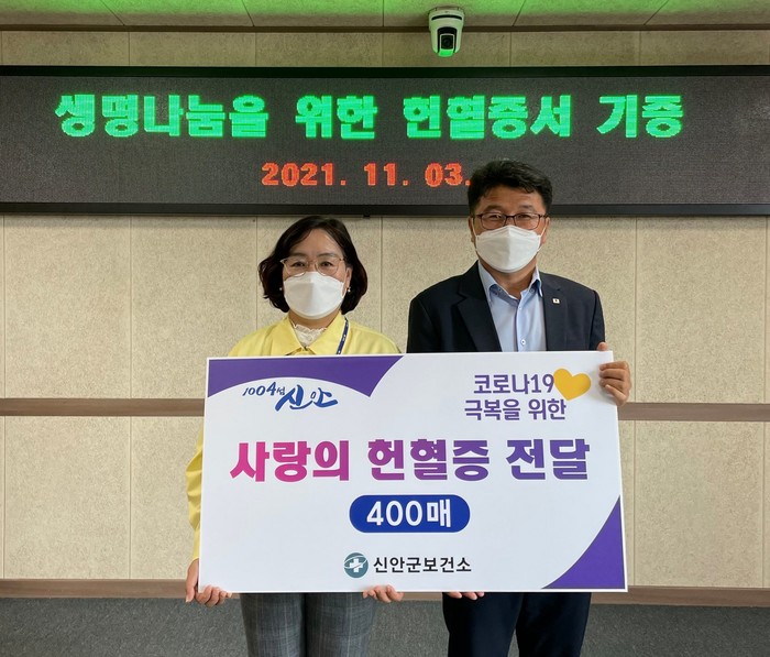 [세계로컬타임즈 조문배 기자] 신안군(군수 박우량)은 코로나19 장기화로 인한 혈액수급의 어려움 극복에 동참하고자 헌혈행사를 통해 기증받은 헌혈증서 400매를 대한적십자사 광주전남 혈액원에 기증한다고 밝혔다.