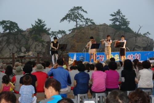 ▲ 전남 해남군 땅끝마을에서 주말에 열린 작은음악회에 관광객들 이 공연을 관람하고 있다. <사진제공=해남군청> |