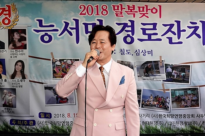 18일 (사)한국희망연맹중앙회 윤진형 회장((주)인정종합건설·대윤건설 대표)이 사비를 털어 경기도 여주시 능서면 소재 (주)대윤건설 사옥 앞 특설무대에서 여주시 각 리 주민과 노인들을 대상으로 삼계탕과 과일, 떡 등 준비해서 대접하는 나눔 행사를 펼쳤다.