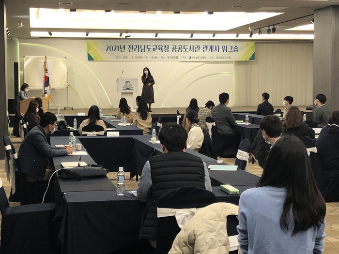 이번 워크숍은‘위드 코로나 시대의 공공도서관 운영 전략’이라는 주제 아래 전라남도교육청 공공도서관 실무자와 관리자를 대상으로 했다.