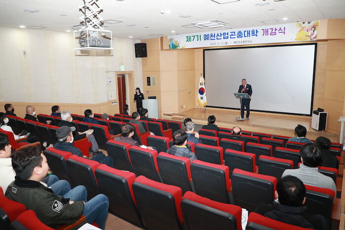 산업곤충대학 개강식은 김학동 예천군수, 박종균 경북대학교 생태환경연구소장, 교육생 25명 등이 참석했다.