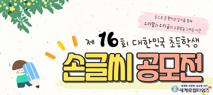 [세계로컬타임즈 조주연 기자] 제16회 초등학생 손글씨 공모전이 개최된다.