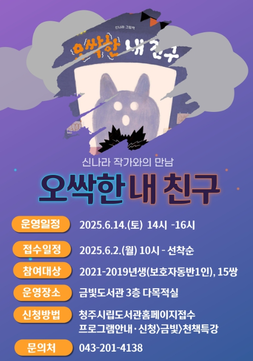 강연 신청은 6월 2일 오전 10시부터 청주시립도서관 누리집을 통해 신청하면 된다.
