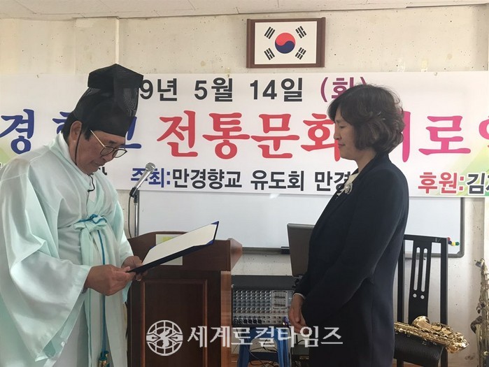 [세계로컬타임즈 조주연 기자] 전북 김제시의 김주란 씨가 14일, 김제시 만경향교로부터 '효부상'을 수상했다.