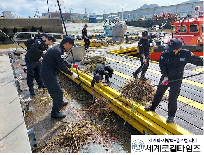 [세계로컬타임즈 김명진 기자] 전남 목포해양경찰서가 집중호우로 인한 항포구 및 해안가 주변으로 해양쓰레기가 유입돼 17일 정화활동을 실시했다.