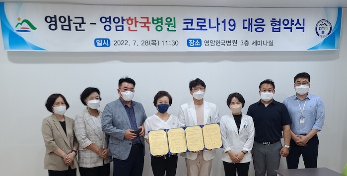 [세계로컬타임즈 강석운 기자] 영암군은 28일 영암한국병원 세미나실에서 영암한국병원과 코로나19 확진 또는 유증상자 응급대응을 위한 업무 협약을 체결했다.