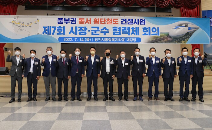 [세계로컬타임즈 홍윤표 조사위원] 당진시를 비롯한 12개 시장·군수가 합심해 윤석열 정부의 국정과제 중 하나인 교통혁신을 위한 '중부권 동서횡단철도 건설사업' 조기 건설 관철에 나섰다.