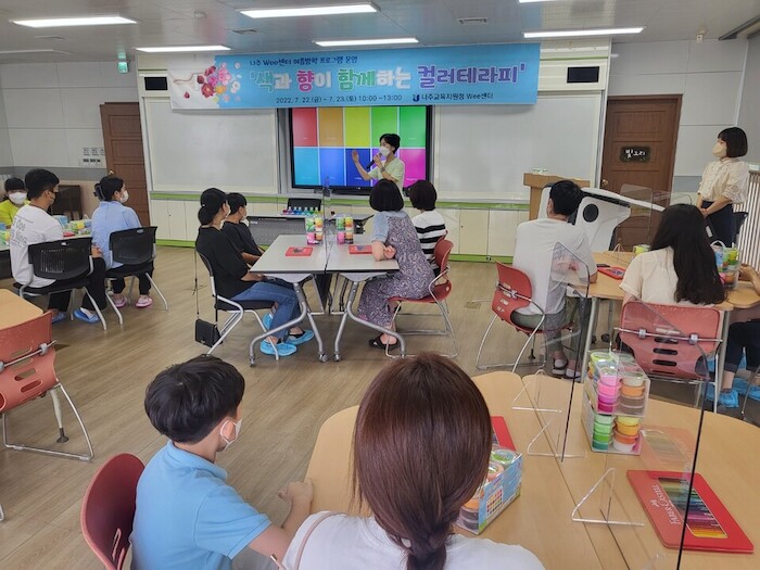 나주 Wee센터는 방학 중에 부모 자녀간에 함께 할 수 있는 시간을 마련하기 위해‘색과 향이 함께 하는 컬러테라피’힐링 프로그램을 실시했다.