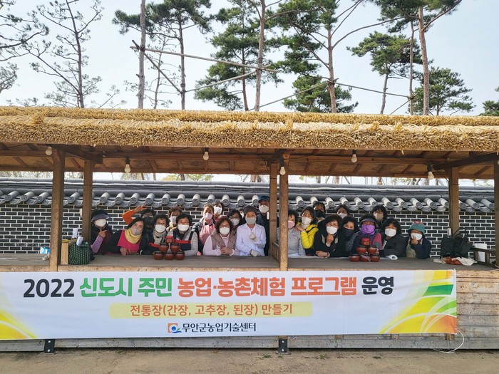 군은 최근 회산백련지 내 하늘정원에서 남악·오룡 주민 25명을 대상으로 콩알메주를 이용한 장 만들기 체험프로그램을 성황리에 운영했다.