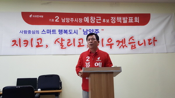 [세계로컬신문 고성철 기자] 예창근 자유한국당 남양주시장 후보가 1일 경기도 남양주시청 브리핑 룸에서 10대 정책 공약 발표회를 가졌다.