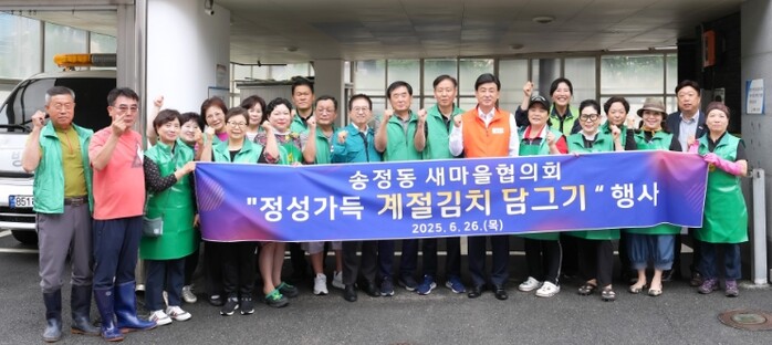 이날 행사에는 송정동 새마을지도자협의회와 새마을부녀회를 비롯해 통장협의회, 지역사회보장협의체 등 30여 명이 참여해 열무김치 150박스를 정성껏 담갔다. 완성된 김치는 지역 내 소외계층 가정에 전달돼 따뜻한 나눔의 마음을 전했다.