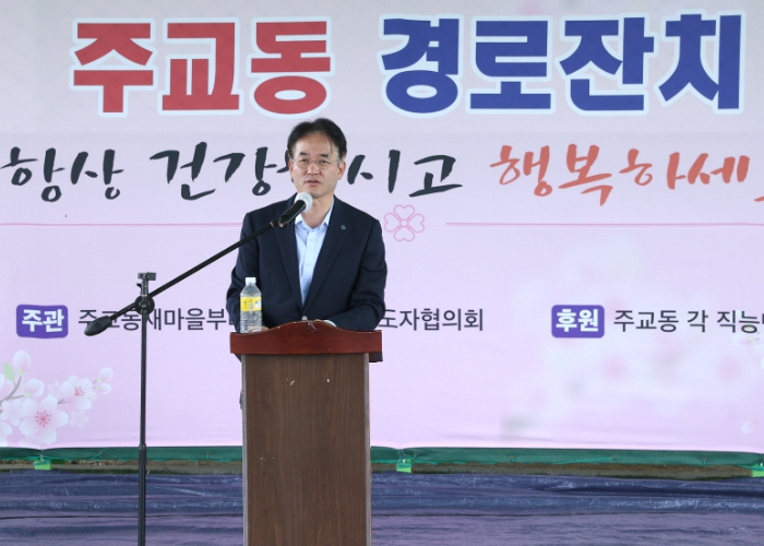경로잔치는 장구 등 신명나는 공연으로 시작해 분위기가 고조됐다. 또한 주교동 새마을부녀회와 직능단체 회원들이 정성스럽게 준비한 음식을 어르신께 대접했으며, 지역 가수의 축하 공연과 어르신 노래자랑이 이어져 흥겨운 축제 분위기 속 세대 간 화합을 이루는 시간이 됐다.