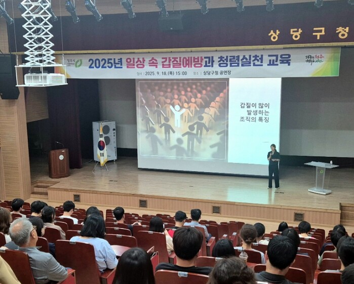 [세계로컬타임즈] 청주시는 18일 상당구청 공연장에서 청주시 직원 300명을 대상으로 일상 속 갑질 예방과 청렴 실천 교육을 실시했다.