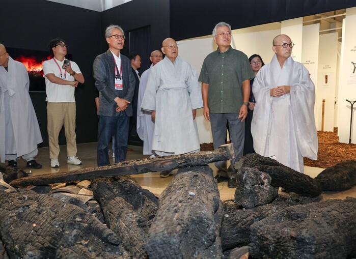 이른 아침 2025 청주공예비엔날레를 찾은 성파 스님과 문 전 대통령 부부는 조직위 변광섭 집행위원장과 2025 청주공예비엔날레 강재영 예술감독의 안내를 받으며 전시를 둘러봤다.