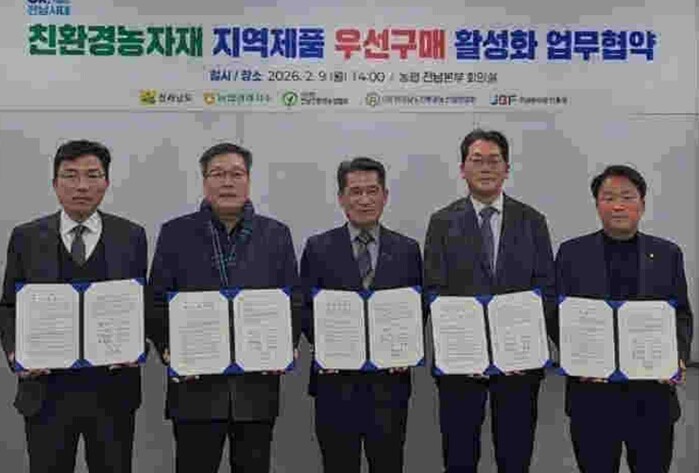 협약에는 전남도와 농협경제지주 전남본부, (사)전남친환경농업협회, (사)전남친환경농산업연합회, 전남바이오진흥원 친환경센터가 참여해 지역에서 생산한 친환경농자재의 안정적 생산·유통 기반 마련과 현장 이용 확대에 공동으로 협력하기로 했다.