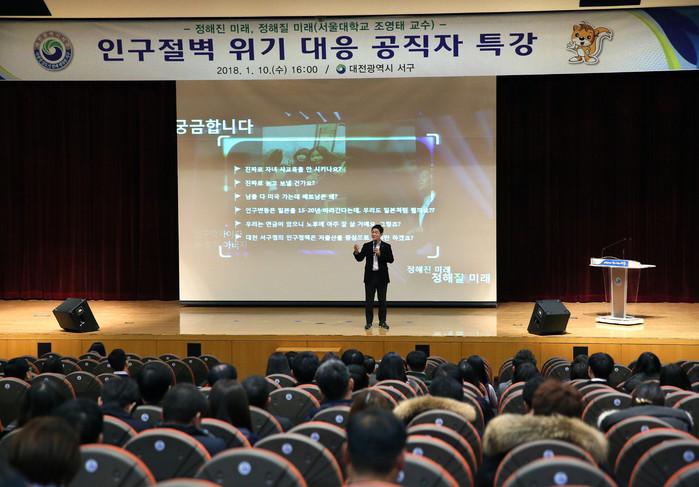 [세계로컬신문 오영균 기자] 대전 서구가 한국사회가 저출산 영향에 심각해자는 인구절벽에 ‘정해진 미래, 정해질 미래’라는 주제로 공직자 특강을 가졌다.