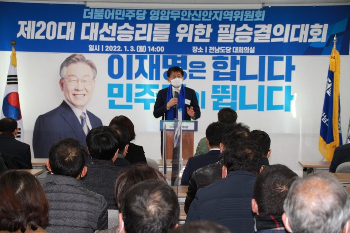 서삼석 위원장은 “민주당의 뿌리인 전남의 영암무안신안에서 이재명 후보의 승리를 견인하고 붐업을 조성하기 위해 필승 결의대회를 개최했다”며 “당원들과 함께 승리의 길에 앞장서겠다”고 밝혔다.