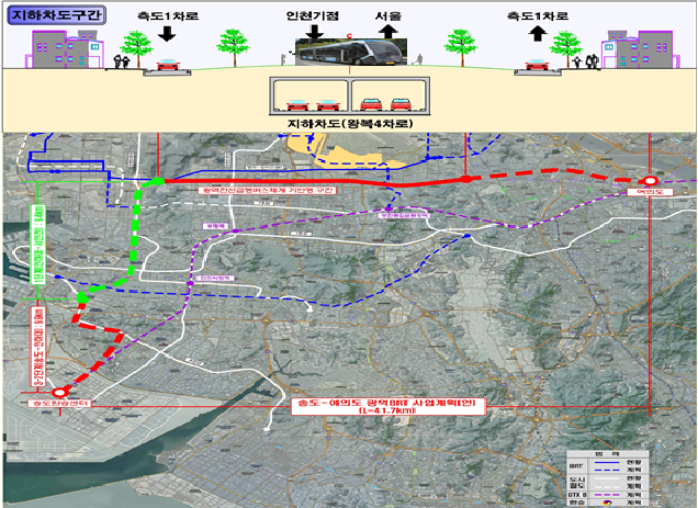 4일 인천시는 인천 S-BRT(L=9.4km)가 역점적으로 추진하고 있는 경인고속도로 일반화사업구간에 설치하는 사업으로서, 단기적으로 기존 운영 중인 청라~강서 간 BRT 노선과 연결해 인하대에서 서울 가양까지 운영할 수 있다.