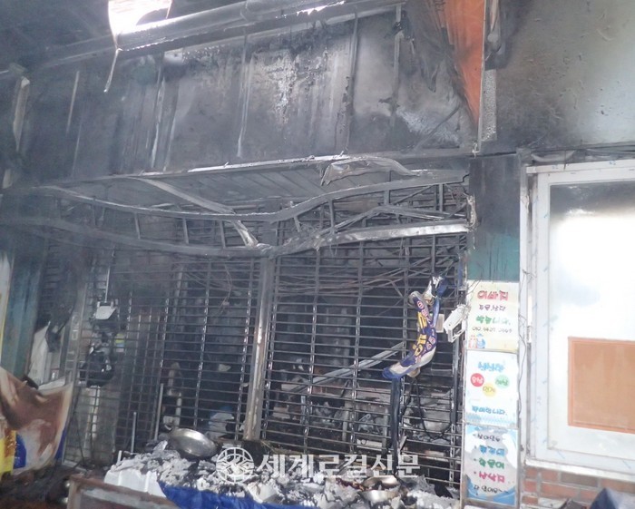 | ▲ 9일 새벽 발생한 대전 중앙시장 화재로 소실된 점포 모습.<사진=오영균 기자> |