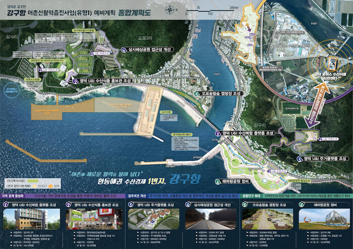 한편, 영덕군은 ‘어촌에 새로운 활력을 불어넣다, 환동해권 수산경제 1번지, 강구항’이라는 슬로건으로 강구항 일대를 수산식품 기반 경제거점 조성을 통한 어촌의 새로운 활력을 도모, 주거기반 마련과 교통환경 개선 등 정주여건 개선을 통한 삶의 질 향상, 방문객 대상 고부가가치 서비스 제공을 통한 생활인구 확대 등을 추진하게 된다.