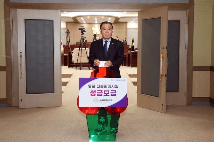 이번 성금은 수원특례시의회 의원 및 의회사무국 직원의 자발적인 참여로 마련된 것으로, 갑작스러운 재해로 삶의 터전을 잃은 피해 주민들에게 작지만 따뜻한 위로와 힘이 되기를 바라는 마음이 담겼다.