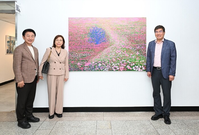 기증 작품은 한국 현대미술계에서 활발히 활동 중인 한귀원 작가의 대표작 회화 '축복의 땅'이다.