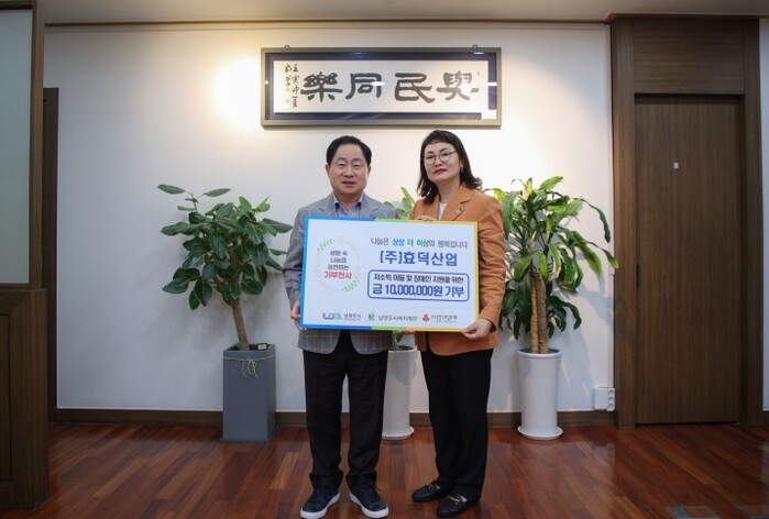 원병일 남양주시복지재단 대표이사는 “지역 사회를 위한 효덕산업의 따뜻한 나눔에 깊이 감사드린다”라며 “기탁해 주신 성금이 꼭 필요한 이웃들에게 투명하게 전달될 수 있도록 최선을 다하겠다”라고 말했다.