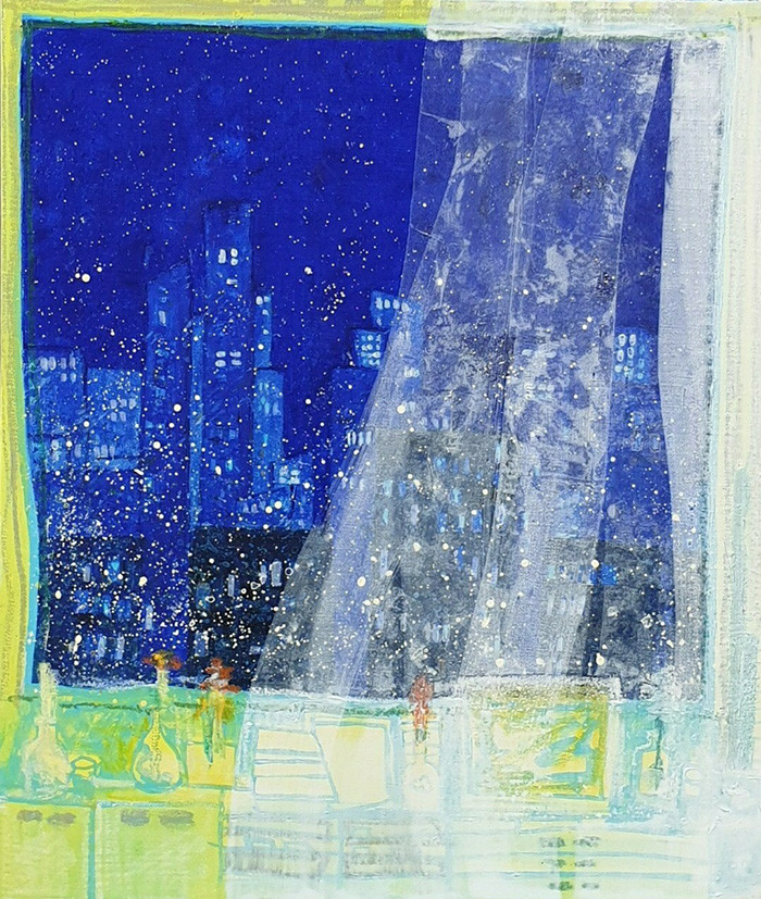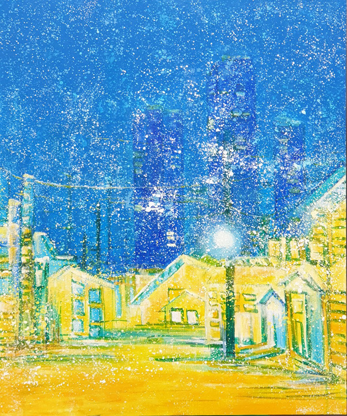 | ▲ 첫눈 오는 밤(72.7x60.6cm acrylic on canvas) ⓒ염선행 서양화가 |