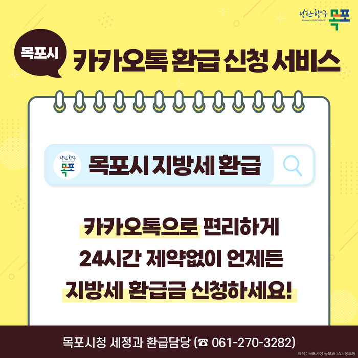 | ▲목포시, 지방세 환급신청 카카오톡으로 간편하게 신청하세요(사진=목포시) |