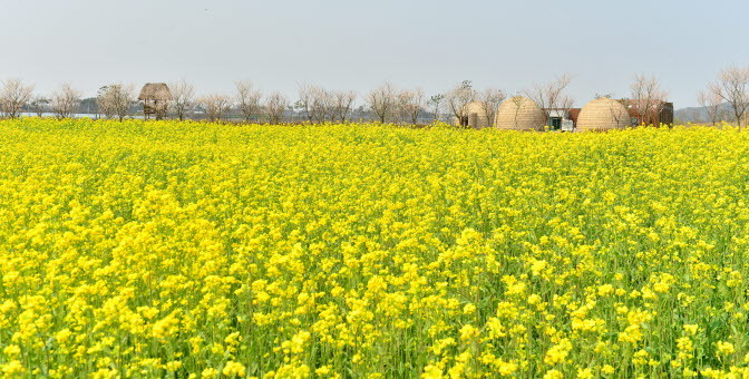 노랗게 만개한 유채꽃밭은 고인돌박물관과 선사체험마을, 고인돌유적과 운곡습지로 이어지는 역사·문화·생태 탐방을 더욱 빛내주고 있다.