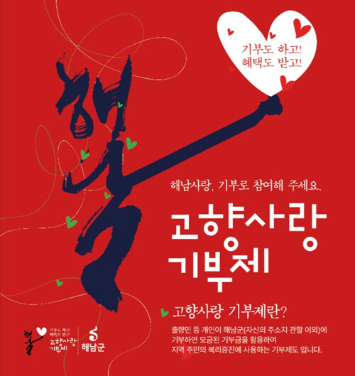 [세계로컬타임즈 강축복 기자] 전남 해남군이 “고향사랑기부제에 향우 등 각계의 기부 행렬이 줄을 잇고 있다”고 18일 밝혔다.
