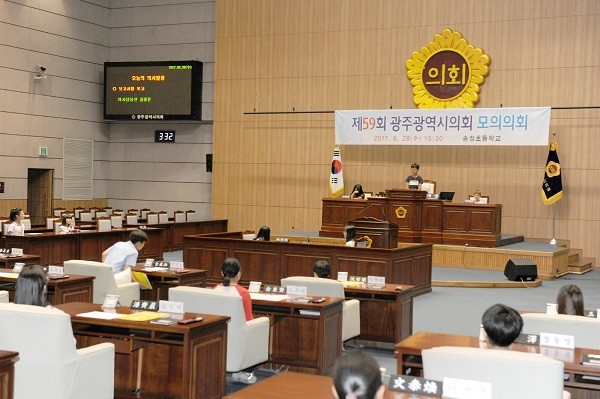 [세계로컬신문 김정태 기자] 광주광역시의회는 28일 오후 본회의장에서 광산구 송정초등학교 학생들이 참가한 제59회 학생모의의회를 열었다고 밝혔다.