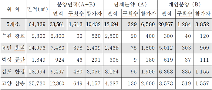 | ▲ 경기도 도민텃밭 분양계획표. (자료=경기도) |