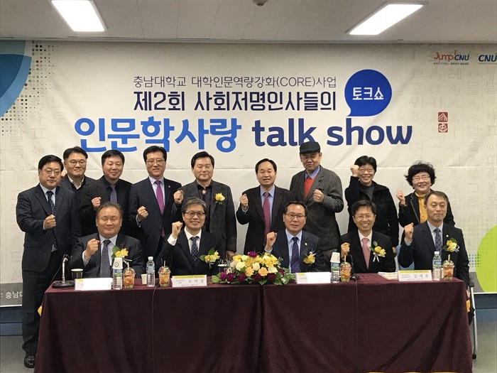 | ▲이상민 국회의원(앞줄 왼쪽 첫번째)이 제2회 사회 저명인사들의 인문학 사랑 토크쇼’에서 파이팅을 외치고 있다. |