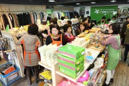 | ▲부산시 북구여성단체협의회가 지난 10일 아름다운가게 구포점에서 일일판매 행사를 열고 있다.<사진제공=부산북구청> |