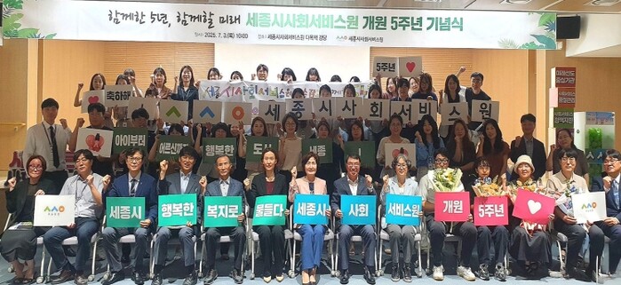 이번 기념식은 2020년 7월 창립 이후, 공공 사회서비스 전달체계의 중심기관으로 성장해 온 세종시사회서비스원의 지난 5년간의 성과를 돌아보고, 향후 10년의 비전과 다짐을 공유하는 의미 있는 자리로 마련됐다.