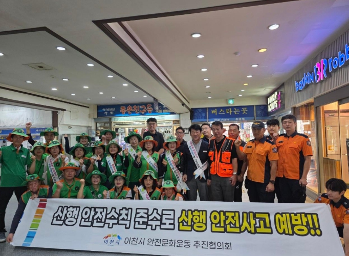 이번 캠페인은 안전문화운동협의체(이천시청, 이천소방서, 이천시 자율방재단, 이천시 의용소방대연합회, 이천시 자율방범대 등) 30여 명이 참석한 가운데 ▲가을철 산행 안전 수칙 방법 ▲안전신문고를 통한 안전 신고 방법 ▲스마트한 안전지킴이 ‘안전디딤돌 앱’ ▲폭염 국민행동요령 등 안전 문화 의식 제고를 위해 홍보지를 배부하며 추진됐다.