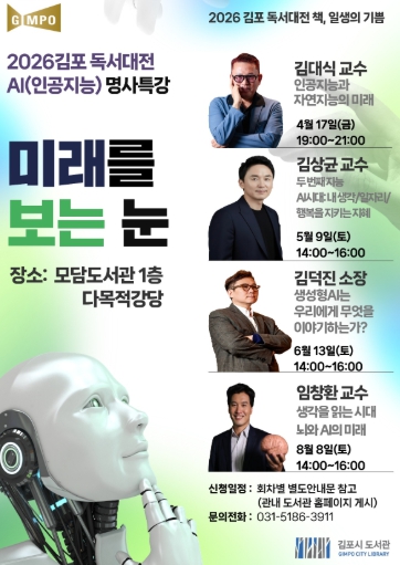 강연은 총 4회로 ▲4월 17일 오후 7시, 김대식 교수 '인공지능과 자연 지능의 미래' ▲5월 9일 오후 2시, 김상균 교수 '두 번째 지능 인공지능(AI)시대: 내 생각/일자리/행복을 지키는 지혜' ▲6월 13일 오후 2시, 김덕진 소장 '생성형 인공지능(AI)은 우리에게 무엇을 이야기하는가?' ▲8월 8일 오후 2시, 임창환 교수 '생각을 읽는 시대 뇌와 인공지능(AI)의 미래'를 운영한다.
