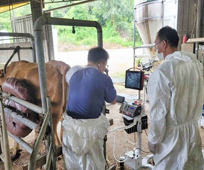 | ▲ 우량암소(앨리트카우 Elite Cow) 난자 채취 모습.(사진=장흥군 제공) |