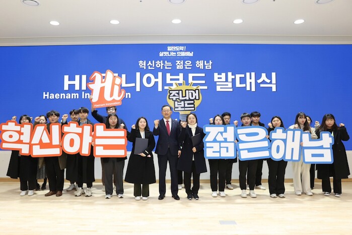 한편 이날 시무식에서는 군청 젊은 실무자로 구성된 HI(Haenam Innovation) 주니어 보드 발대식도 개최했다. HI 주니어 보드는 MZ세대(1980~1990년대생)로 구성된 회의체로 수평적 의사소통의 장을 마련, 창의적인 아이디어 발굴과 조직문화 혁신을 이끄어 나갈 예정이다. 공직사회에 새로운 변화의 바람을 불러올 젊은 해남의 시작과 함께 2023년을 힘차게 출발하자는 의미를 담았다.