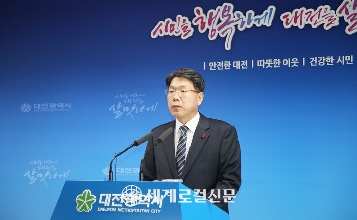 | ▲ 이재관 대전시장 권한대행이 대전시 주요현안 3건 추진사항에 대해 설명하고 있다. |